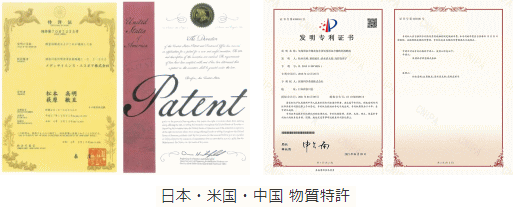 日本・米国・中国で、難しいとされる「物質特許」を取得しました。
