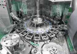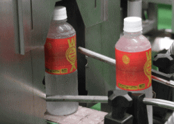 充填タンクに貯められたWOXが充填機でペットボトルに充填されます。 |
