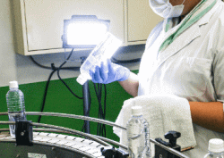 クリーンルームでキャッピング後とシュリンク装着後の検品をします。 |