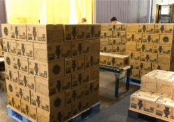 品質確認された製品は箱詰めされ衛生管理された倉庫に保管されます。 |