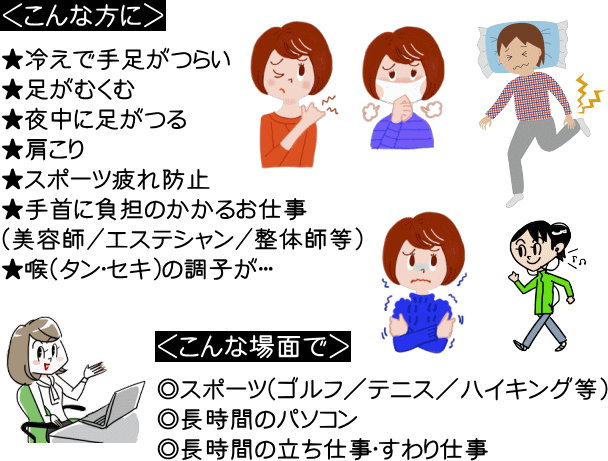 手足や体全体を酷使することが多い方(治療師、整体師、指圧師、マッサージ師、インストラクター、美容師、エステティシャン等)が好んで愛用し、手放せなくなるほどの信頼性です。
