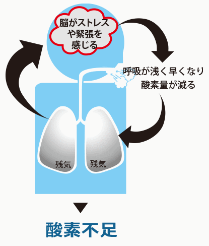 呼吸が浅くなると、空気中から十分な酸素を取り込むことができなくなってしまい酸素不足になる。