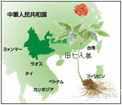 「田七人参の根」に含まれているサポニンの量は薬12%で「高麗人参」の3%をはるかに凌いでいます。 |