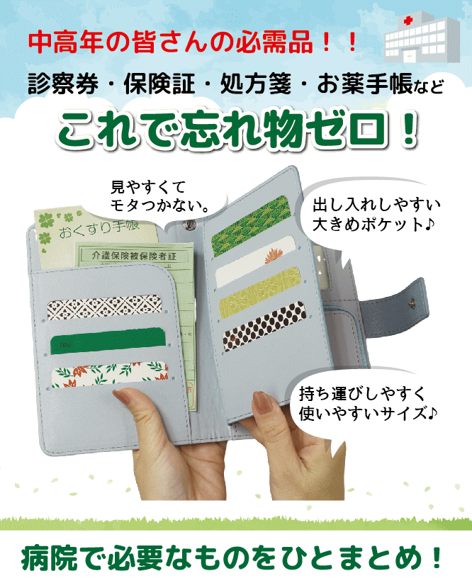 診察券・保険証・処方箋・お薬手帳がスッキリまとまる!