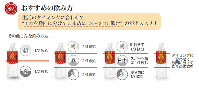 成分は水と酸素だけでカロリーゼロですので安心してお飲み頂けます。 |
