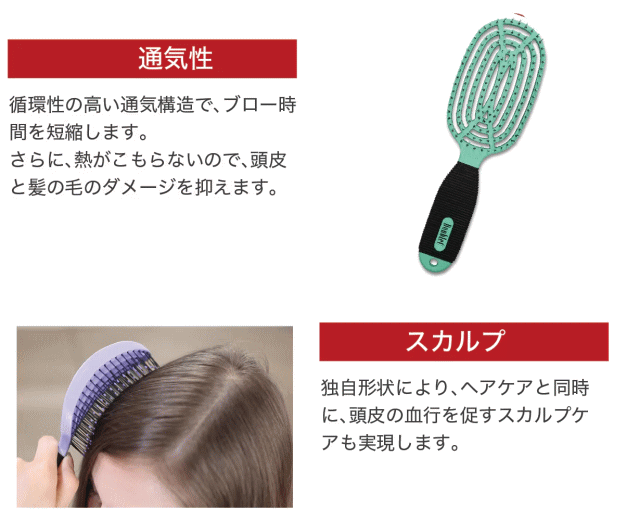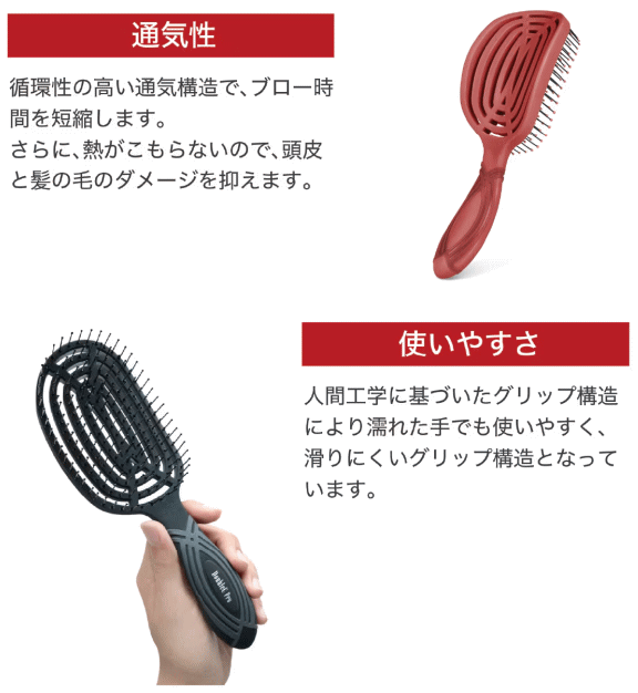また、熱が抜ける構造となっているので、ドライヤー時の熱ダメージをおさえることができます。