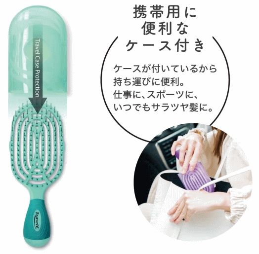 持ち運びに便利なケース付きで、旅行だけでなく、仕事や買い物、スポーツジムでも乱れた髪をサッとツヤ髪へ。