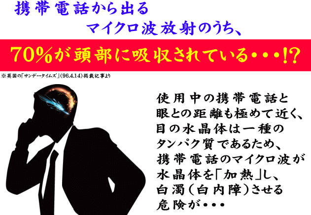 なぜなら、「携帯電話をかけていると、頭の中が熱くなる」と、文字通りにマイクロ波の「熱作用」を体感していることを証言する人が実在するからである。 |