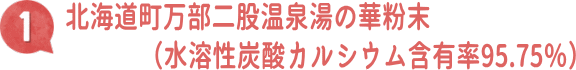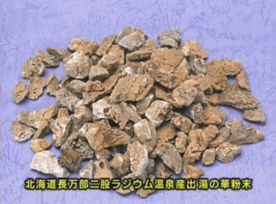 ●原材料:二股ラジウム温泉湯の華、黒松内産サンゴ化石粉末、青森産ヒバ材粉末、トルマリン鉱石粉末、遠赤外線黄土粉末
