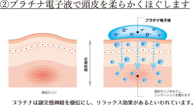Aプラチナ電子液配合で頭皮を柔らかくほぐす