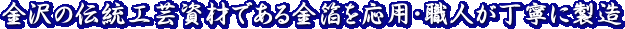 石川県金沢市の金箔は、およそ四百年以上も継承されてきた伝承技法による箔の生産地であり日本国内で99%のシェアがあります。