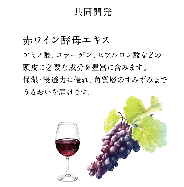 アミノ酸、コラーゲン、ヒアルロン酸などの頭皮に必要な成分を豊富に含みます。