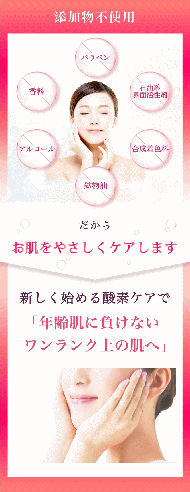 お肌に酸素宣言。酸素補給で憧れのツヤ肌。 |